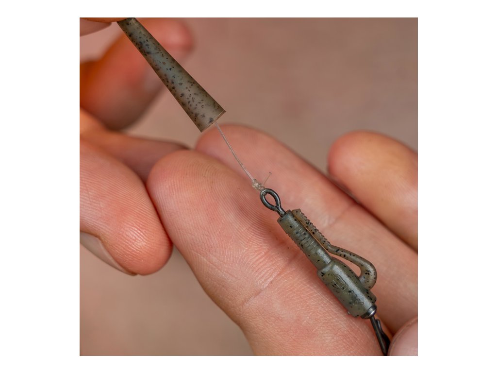 - Při použití ve spojení se závěskou jednoduše nastavíte sílu fixace podle toho, jak moc je převlek natažen (vždy nejprve navlhčete závěsku a nikdy převlek nenasazujte na doraz kvůli bezpečnosti pro ryby)