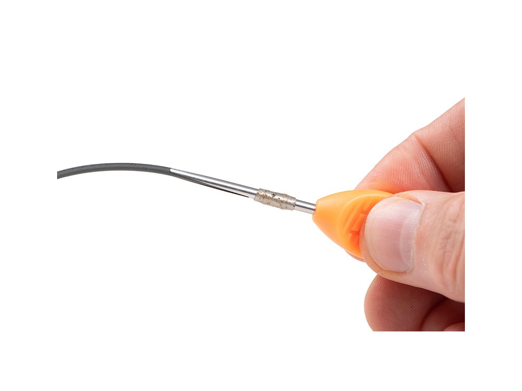 - Pomocí navlékače Fox Tubing Threader jednoduše navlékněte bužírku na zvolenou hadičku v požadovaném směru.