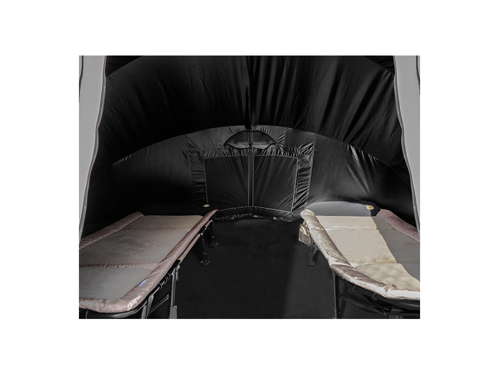 Úplně nový bivak kompletně navržený designéry značky Delphin. Díky tomu je bivak promyšlený do nejmenších detailů. Postavený je na odolné garážové konstrukci, která je tvořena až třemi žebry, která jsou mezi sebou vyztužená dalšími prvky konstrukce. To zaručuje výjimečnou stabilitu i během silného větru či bouřky. Také umožňuje lepší využití vnitřního prostoru. Bivak je určen pro komfortní pobyt 2 až 3 osob v závislosti na objemu jejich výbavy. Rozměry jsou: 310x300x175cm.