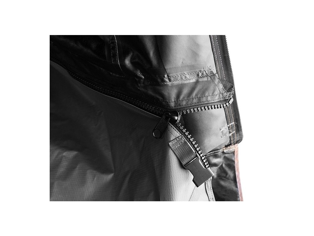 Díky použití látky nejvyšší jakosti s vodním sloupcem až 10000mm a kompletnímu podlepení švů, je bivak dokonale utěsněný vůči jakémukoliv objemu srážek, které by vás mohly zaskočit.