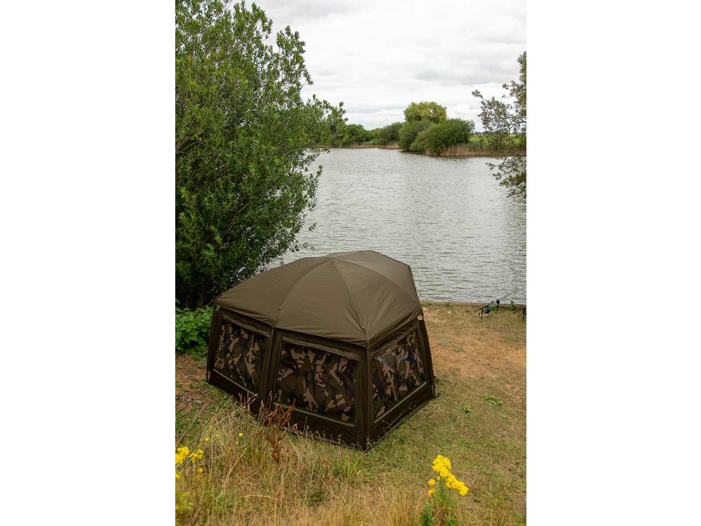 Přehoz Deluxe Wrap prodlužuje váš bivak o 60cm, nabízí tak větší ochranu a v kombinaci s připojením předním panele dostatek místa pro dvě lehátka. Kompletního zakrytí se dosáhne odepnutím předního panelu z bivaku a jeho připnutím na přehoz. Pro dosažení optimálního proudění vzduchu jsou čtyři větrací otvory s dvojitými zipy zarovnané s větracími otvory na bivaku, zatímco přes spojky připojené podpěrné tyče přidávají rozšiřujícímu žebru rámu na stabilitě. Snadno se zajišťuje s pomocí pásků na suchý zip a D-oček. V nabídce v zeleném i camo provedení