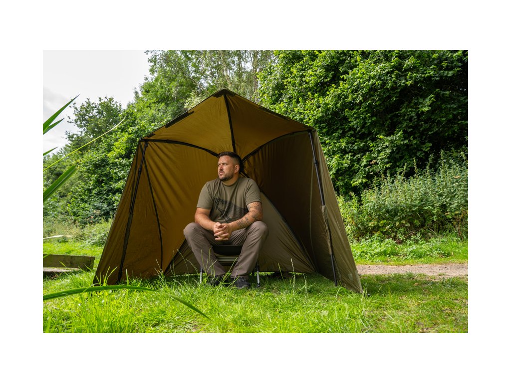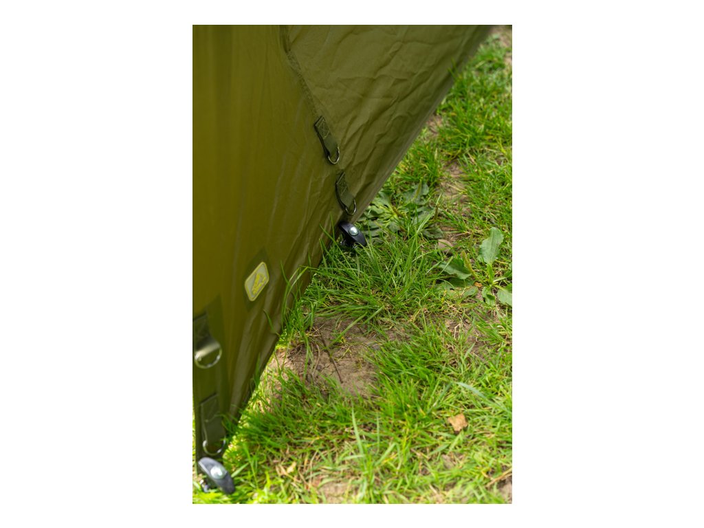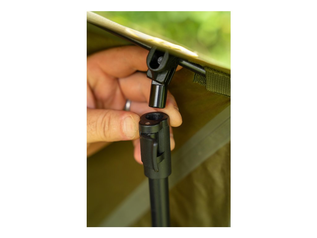 Přístřešek využívá vnitřní systém krátkých žeber typu brolly, což znamená maximální prostor nad hlavou a zároveň jednoduchou a rychlou stavbu. Není potřeba žádná středová tyč!