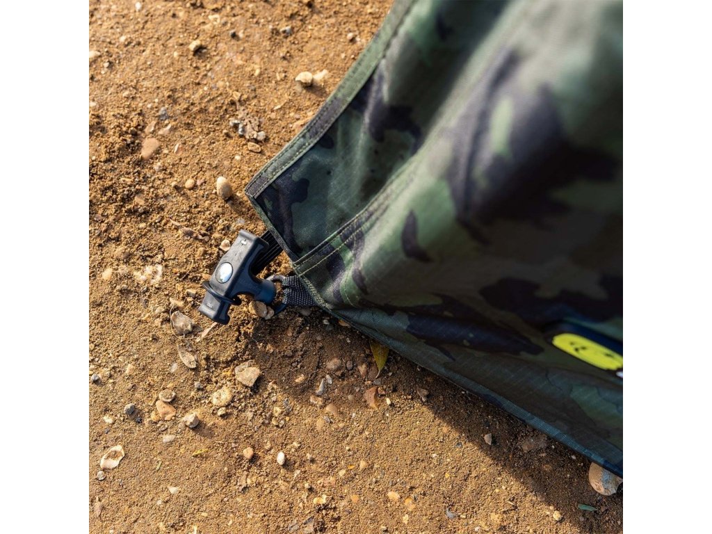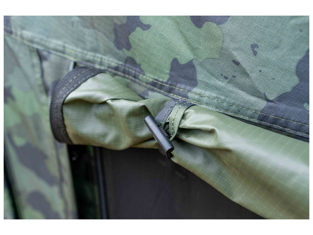 - Bivak je vybaven čtyřmi magnetickými popruhy na pruty, vyztuženými upevňovacími body a odolnými kolíky