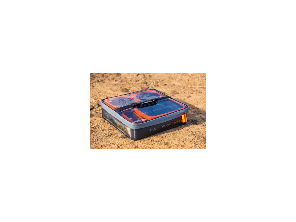 Bait System se může pochlubit kapacitou 12 litrů, takže je ideální pro zápasy nebo výpravy, kde je vyžadováno velké množství návnady nebo široká škála různých nástrah. Navzdory své velkorysé velikosti zůstává Bait System kompaktní na boční přihrádce a snadno se přepravuje díky pevné, ergonomicky navržené rukojeti.