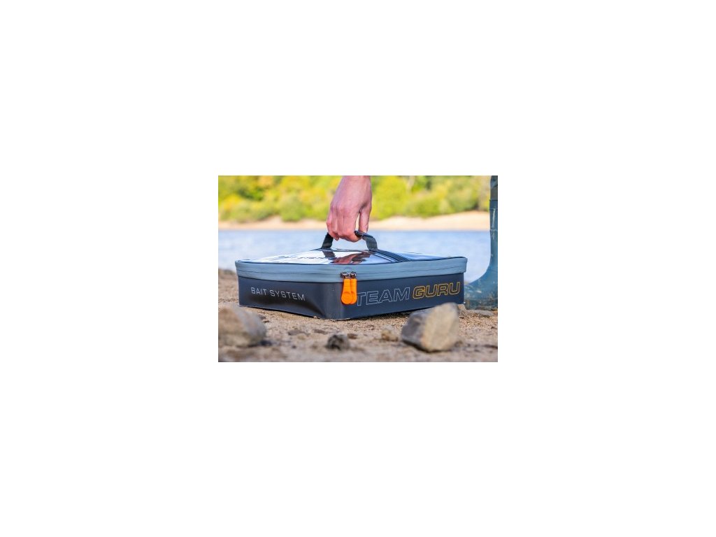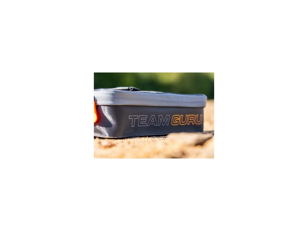 Jádrem systému návnady Team Guru je odolná konstrukce EVA o tloušťce 0,8 mm, která nabízí výjimečnou pevnost a flexibilitu, přičemž zůstává lehká a snadno se čistí. Exteriér je zakončen zakázkovými nadrozměrnými táhly zipů Guru, navrženými pro větší pevnost a snadné použití, a to i s mokrýma nebo studenýma rukama.