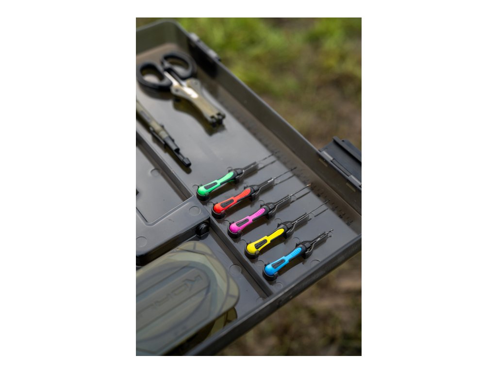 Vaše nástroje na krmení, odháčkovávač a nůžky se pohodlně zakliknou na své místo, zatímco hlavní část boxu lze upravit pomocí přepážek podle vašich potřeb. Víko obsahuje dva mělké RIG BLOX, které uchovají všechny vaše předvázané návazce v bezpečí před vlivy počasí.