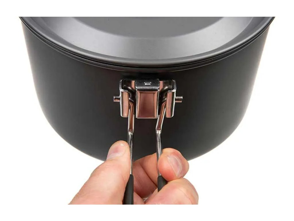 V této 3 dílné sadě nádobí, dostanete pánev, středně velký hrnec a 0,9l konvici. Stěny hrnců a pánve jsme vyrobili ze silnějšího hliníku, pro použití kvalitnější nepřilnavé povrchové úpravy. Jak všichni víme, hodně současných rybářských značek tvrdí že jejich pánve jsou nepřilnavé, ale moc nepřilnavé jsou? Jsme přesvědčeni, že naše nepřilnavé nádobí je to nejlepší co můžete v rybářských obchodech najít.