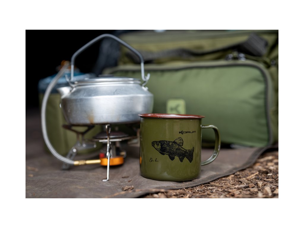 Řada Korum Classic nabízí produkty, které jsou synonymem tradičního lovu na častou položenou rybu. Tento krásný 330ml smaltovaný hrnek obsahuje krásné dílo rybářského umělce, Steva Phillipse. Nádherný dárek k rybaření.
