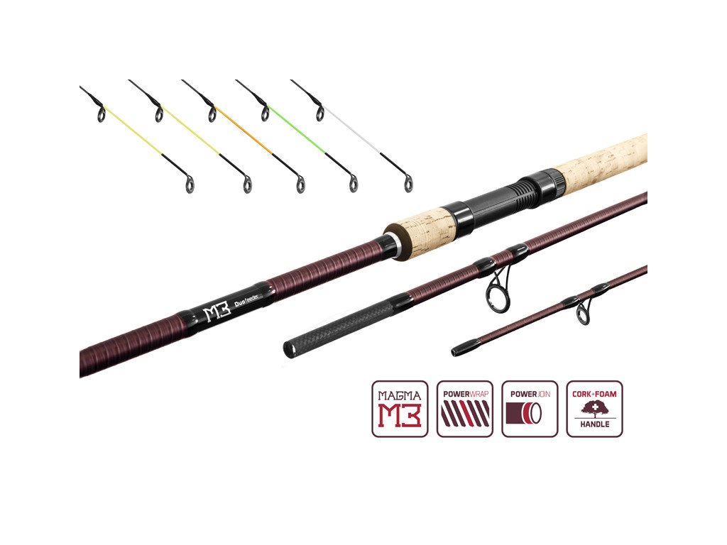 Řada vínově bordových prutů Delphin MAGMA M3 DUO je členem nejúspěšnější série feederových prutů s prodlužovacím dílem značky Delphin. Snažili jsme se zachovat všechno to, co dělá tyto pruty bestsellery, ale i přidat něco zcela nového, abychom opět posunuli výše pomyslnou laťku kvality, požitku z rybačky a spolehlivosti. Právě to stálo za zrodem vývoje technologie Delphin 2Power. Tato technologie se skládá ze dvou podsegmentů, a to PowerWrap a PowerJoin. Oba segmenty jsou aplikovány na každém modelu série MAGMA M3. PowerWrap si všimnete okamžitě při kontaktu s prutem. Jedná o dodatečné vinutí karbonu po celé délce prutu, kterým jsme dosáhli výrazného zvýšení pevnosti. Také zvyšuje odolnost vůči momentovému přetížení prutu. V praxi to znamená výrazně vyšší životnost prutu a snížení náchylnosti na mechanické poškození. Sekundárním aspektem tohoto vinutí je vizuálně velmi přitažlivý prvek strukturovaného blanku.