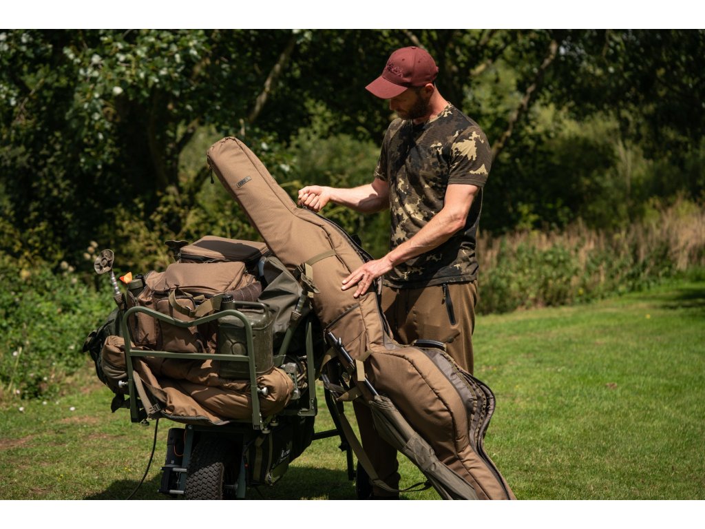 Korda Compac 5 Rod Holdall je navržen tak, aby pojal kompletní pruty i s navijáky. Plné polstrování nabízí kompaktní řešení pro 3,6m pruty. Tři vnější kapsy dávají pouzdru tuhost při zatížení, stejně jako nabízí úložný prostor pro podběráky nebo vidličky.