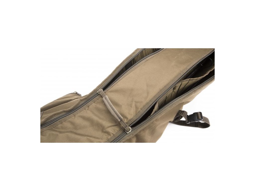 Venkovní kapsička se stahováním slouží k připnutí deštníku a větší kapsa na uložení bouřkových tyčí, vidliček anebo podběráku Scope Landing Net.