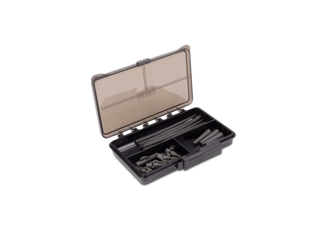 Úložný box s nízkým profilem, který má zakřivené stěny základny, aby vyhovoval pro uložení nejmenších prvků montáží.