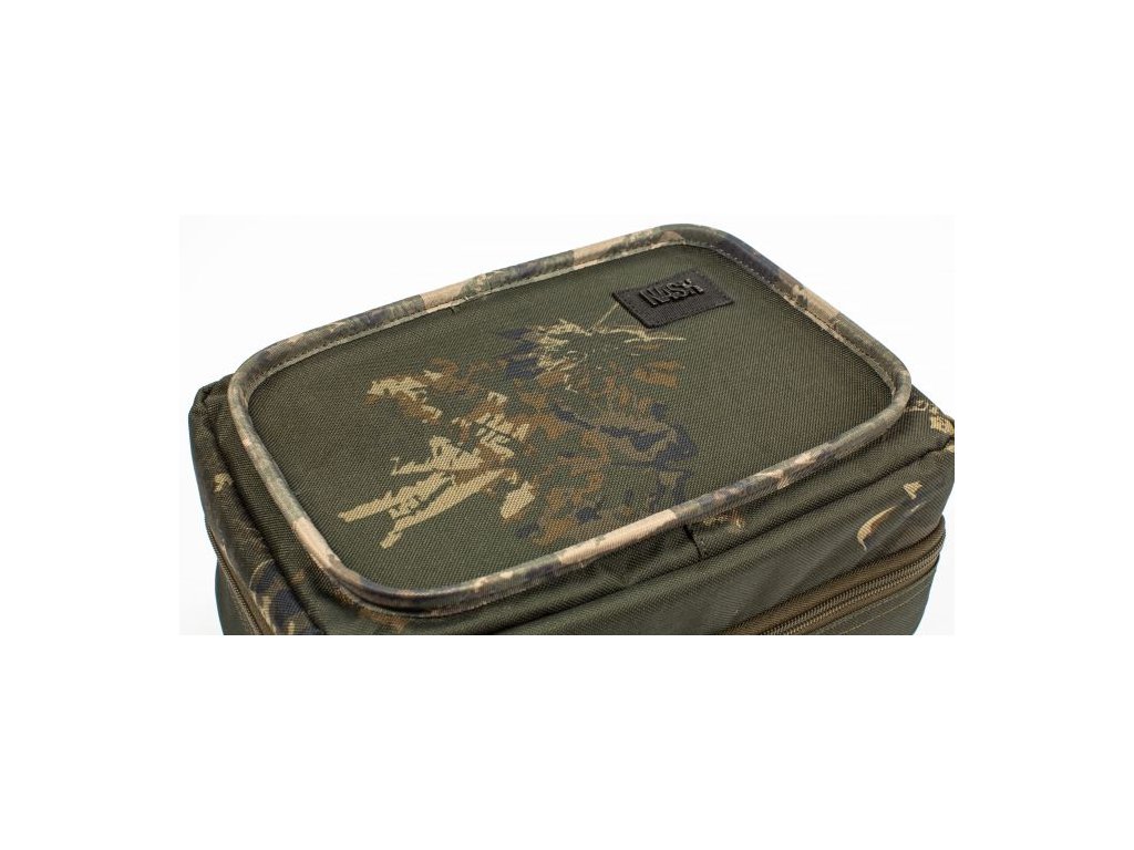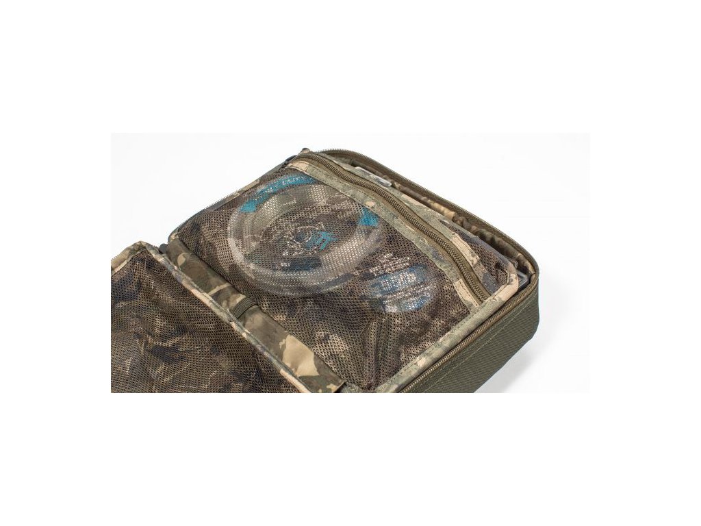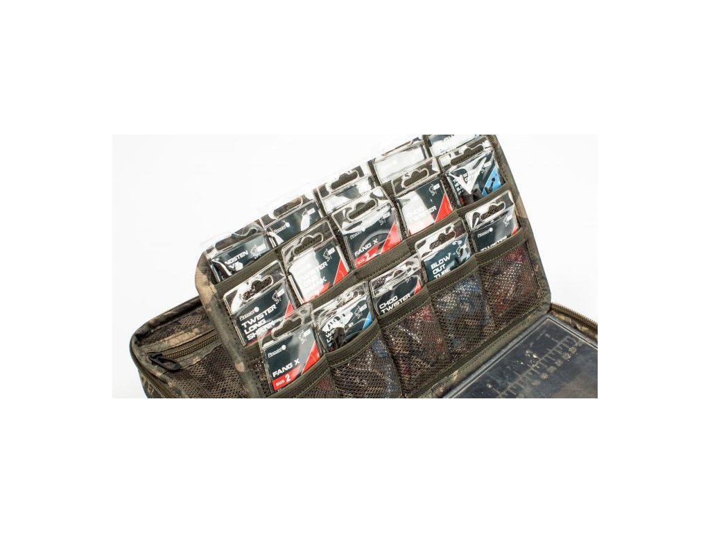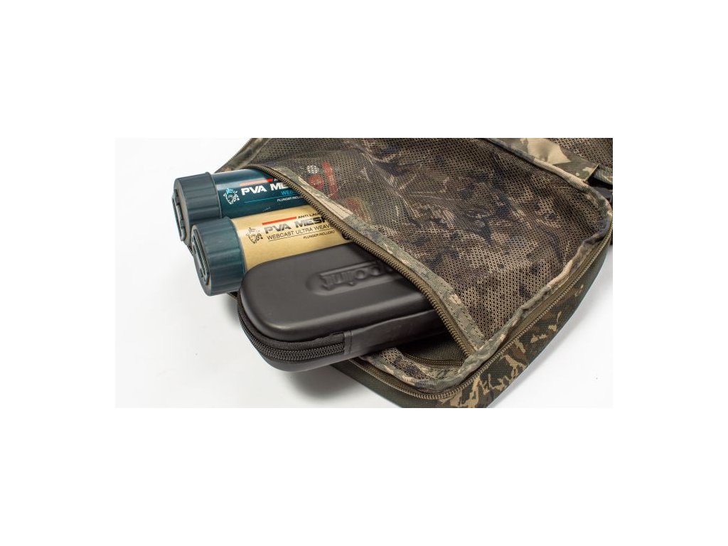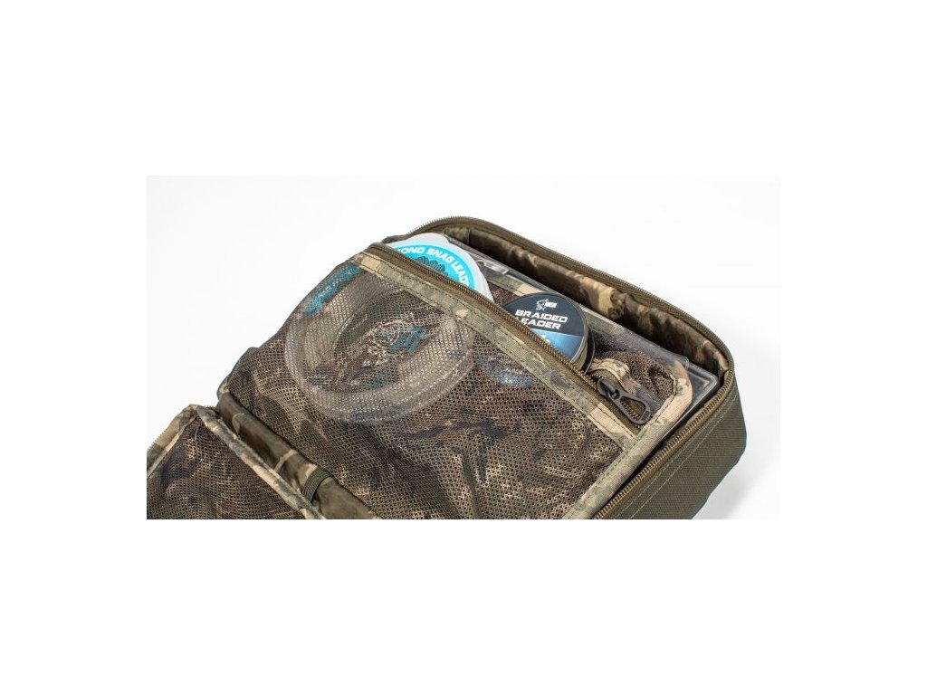 Jeden z nejoblíbenějších produktů Nash. Nyní je v camo vzoru s vylepšenými prvky a funkcemi. Otevřený design s velkým úložným síťovaným prostorem na zip, centrálním úložným prostorem a prostorem určeným pro uložení Medium tackle boxu. Středová přepážka nabízí 15 síťových kapes pro uspořádání všech Nash háčků a další bižuterie Nash. Dále zde najdete velkou kapsu na zip pro uložení PVA, pomůcek pro navazování návazců, značící fixy a cívky s vlasci.