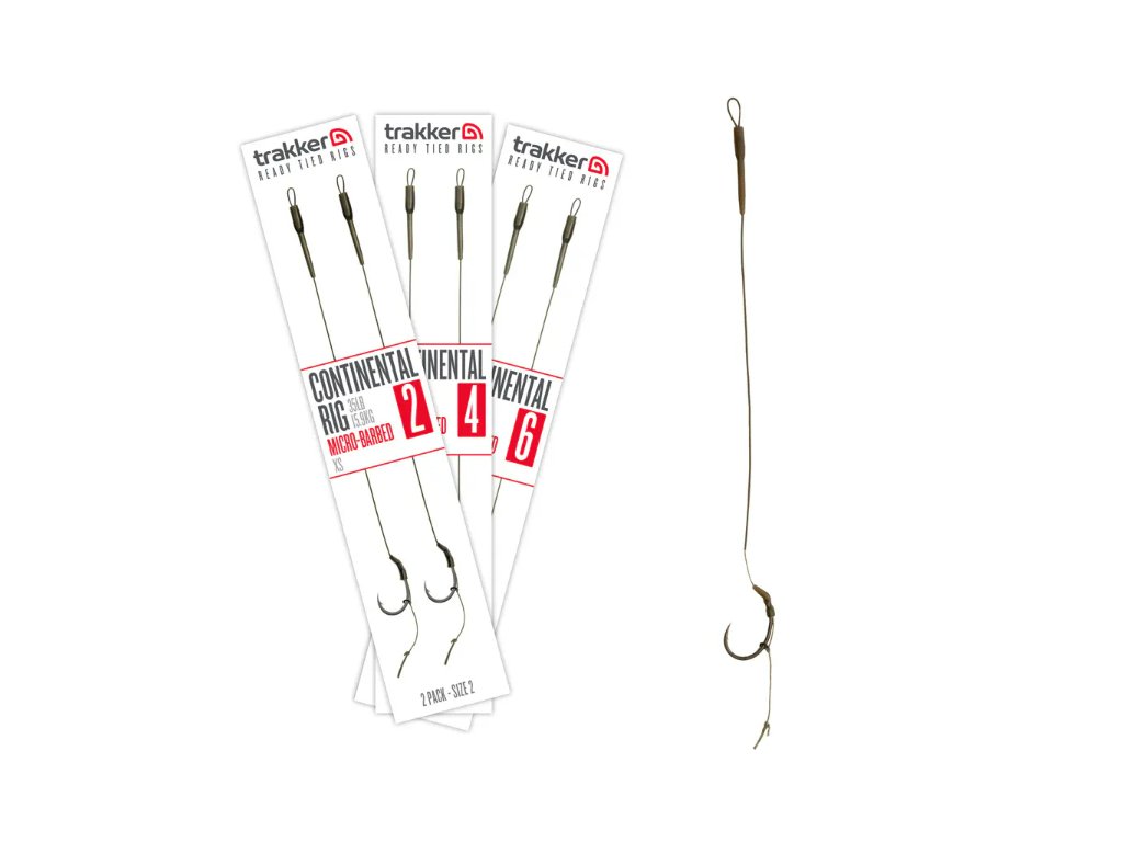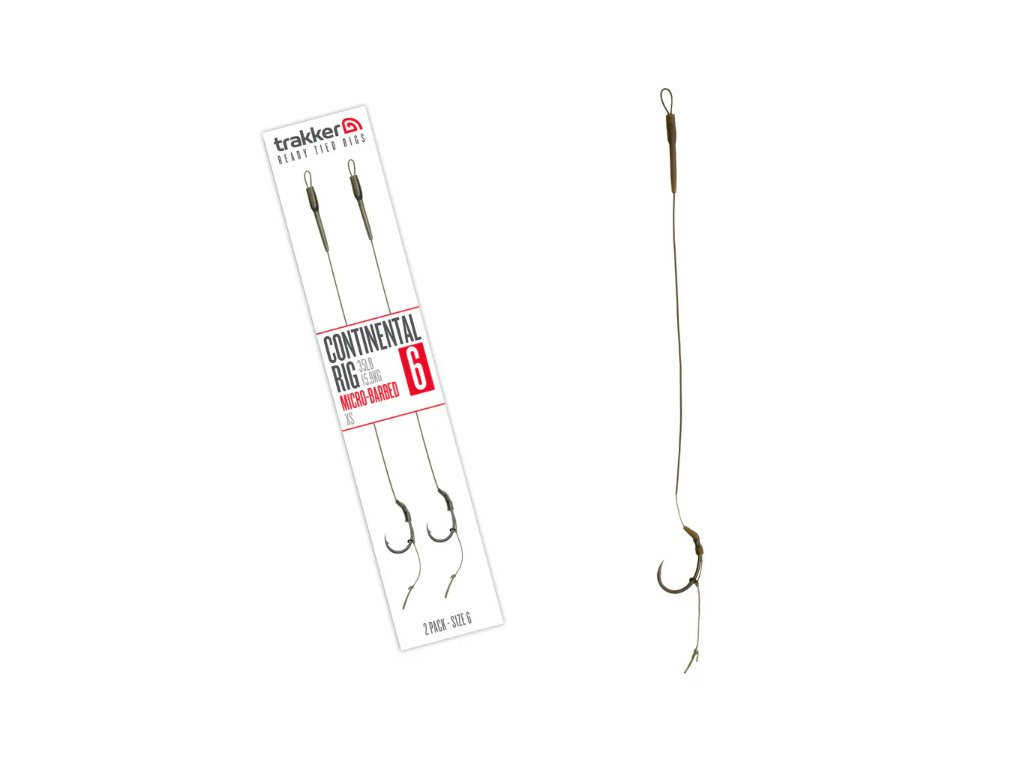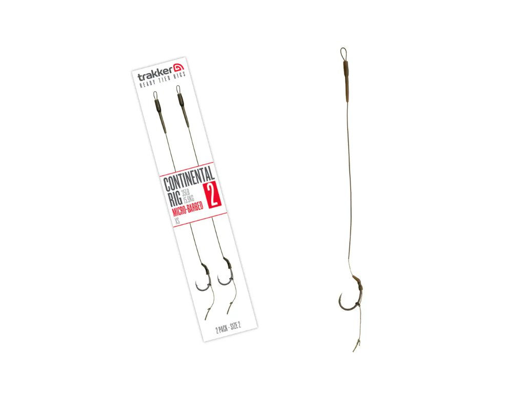Trakker Continental Rig je navržen pro maximální efektivitu háčku a vychází z návazce Blowback Rig se zesílenými X-háčky a návazcem s vyšší nosností. Osvědčená prezentace s prémiovými komponenty z řady Trakker Terminal. Perfektní volba, když převládají extrémní podmínky a používají se větší nástrahy. Každá návazec je uvázána háčkem Wide Gape-X ostrým jako břitva, s malým návazcovým kroužkem dokonale umístěným na hřídeli, aby vytvořil charakteristický efekt zpětného rázu, který umožňuje háčku resetovat a agresivně se otáčet, aby háček co nejlépe seděl. S naším silnějším polotuhým návazcem o hmotnosti 35 lb nabízí návazec dokonalou rovnováhu mezi silou, flexibilitou a tuhostí pro přirozenou, ale kontrolovanou prezentaci nástrahy. Odkrytý oplet umožňuje volný pohyb nástrahy a Hook Rigger zajišťuje, že agresivní úhel špičky háčku je zachován na každém návazci. Malý návlek proti zamotání pomáhá zabránit zamotání během nahazování a zajišťuje jednoduchou a přímočarou montáž. Pro kompletaci nástrahy jsou přiloženy zarážky na boilies v různých velikostech, které umožňují snadné přizpůsobení různým velikostem nástrah. Poutko na konci umožňuje rychlé připevnění k různým rychlovýměnným systémům, takže je připraven k použití ihned po vybalení. Trakker Continental Rig je ideální pro větší nástrahy na dně nebo vyvážené prezentace a je první volbou pro rybáře, kteří hledají spolehlivý, vysoce výkonný návazec s minimálním úsilím. K dispozici v řadě velikostí háčků, aby vyhovovaly různým rybářským situacím. Dodává se v balení po dvou kusech.