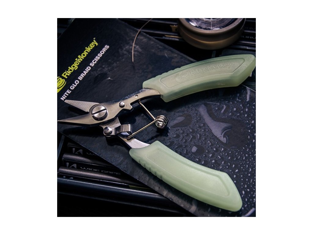 Super ostré ozubené břity, které přestřihnou i tu nejpevnější šňůrku bez sebemenších problémů, pružinový mechanismus, který snese velké zatížení, už jen proto by měly být naše nůžky nezbytnou součástí výbavy každého rybáře. Jako u všech svých produktů i zde nabízí Ridgemonkey vychytávku v podobě ve tmě svítících rukojetí, díky kterým je bude v noci nalézt už úplná hračka!