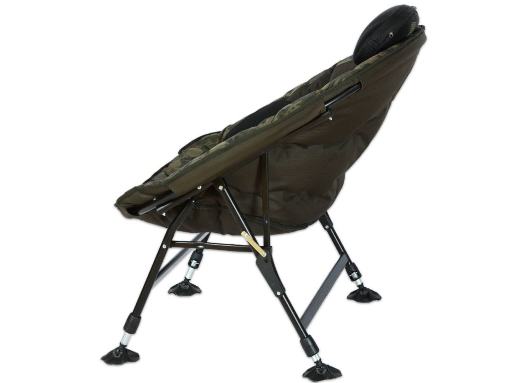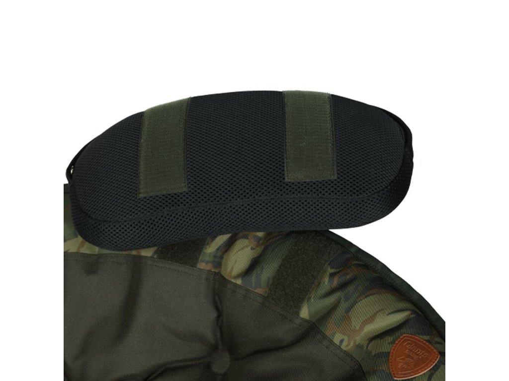Křesílka má praktický polštářek pod hlavou, který je odnímatelný pomocí suchého zipu a na boku naleznete praktickou kapsu na Váš mobilní telefon. - Jedinečný provedení sedáku tohoto křesla - Více pohodlí díky silnému vnitřnímu polstrování - Rychlé rozložení a složení - Čtyři výškově nastavitelné nohy - Ocelová konstrukce o průměru 19 a 22 mm - Použitá látka 500D polyester zelená/maskáčová - Rozměry: 58 x 53 x 37 x 82 cm - Váha: 7 kg