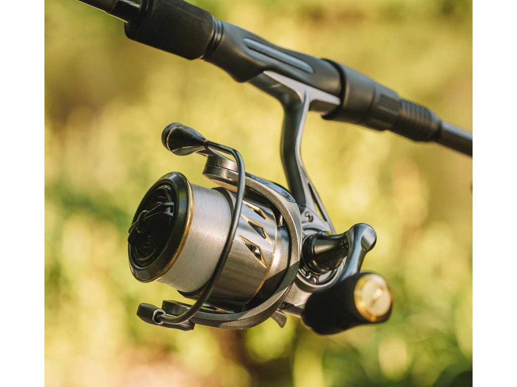 Naviják s širokým využitím pro různé způsoby lovu, který je v nabídce ve dvou velikostech cívky 3000 a 4000. - Masivní grafitové tělo a rotor - Kovová cívka + náhradní grafitová cívka - 6+1 precizních kuličkových ložisek - Pevnostní hnací soukolí - Systém pro perfektní navíjení vlasce - Rolnička proti kroucení vlasce - Precizní systém přední brzdy - Hliníková klička s protiskluzovým madlem - Zastavení zpětného chodu v jakékoli poloze - Návin na jedno otočení kličkou 0,90 m - Kapacita cívky: 0,34mm – 220m, 0,37mm – 180m - Převodový poměr: 6,2: 1 - Váha: 384g