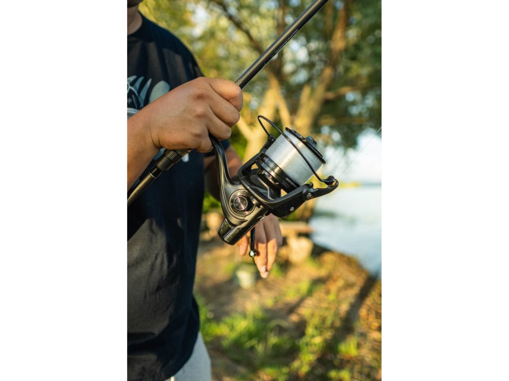 Předností tohoto navijáku je velká kapacita kovových cívek o velikosti 9000 a 10000, díky tomu můžete navijáky použít jako odhozové, nebo na velkých jezerech při zavážce. Moderní design a kvalitní konstrukce jsou předurčeny k dlouhé životnosti navijáku. V této cenové relaci se jedná o naviják, který překoná Vaše očekávání a je osazen kvalitními komponenty, jako jsou kovová klička a zesílená hřídel. Rozměrné kovové cívky mají konickou odhozovou hranu, díky níž se snadno odvíjí vlasec, a tudíž dosáhnete delších hodů. Hladký chod navijáku zajišťuje vyvážený rotor a rolnička zabraňuje kroucení vlasce. U takového navijáku je samozřejmostí kvalitní přední brzda. Návin na jedno otočení kličkou 1,06 m. Hmotnost: 702g Převod: 4,6 : 1 Počet ložisek: 6+1 Kapacita cívka 9000 : 0,40 mm – 415 m, 0,45 mm - 285 m, 0,57 mm - 205 m Kapacita cívka 10000 : 0,30 mm - 880 m - 0,35 mm – 650 m, 0,40 mm - 510 m