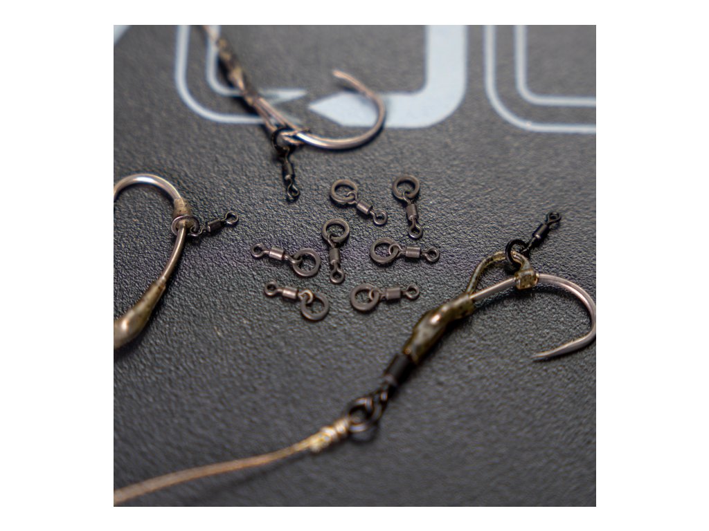 - Obratlík s kroužkem ringed micro hookbait swivels—ideální pro upevnění nástrah na ramínka háčků nebo na části D-návazců, které umožňují optimální pohyb