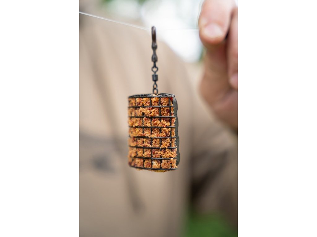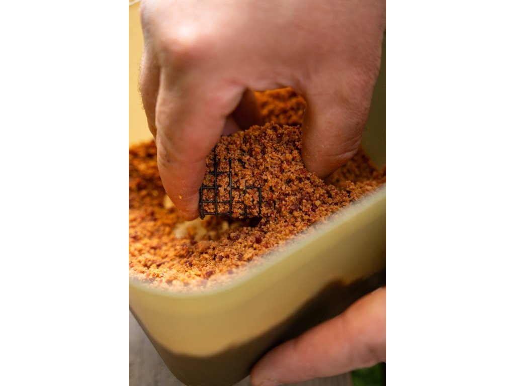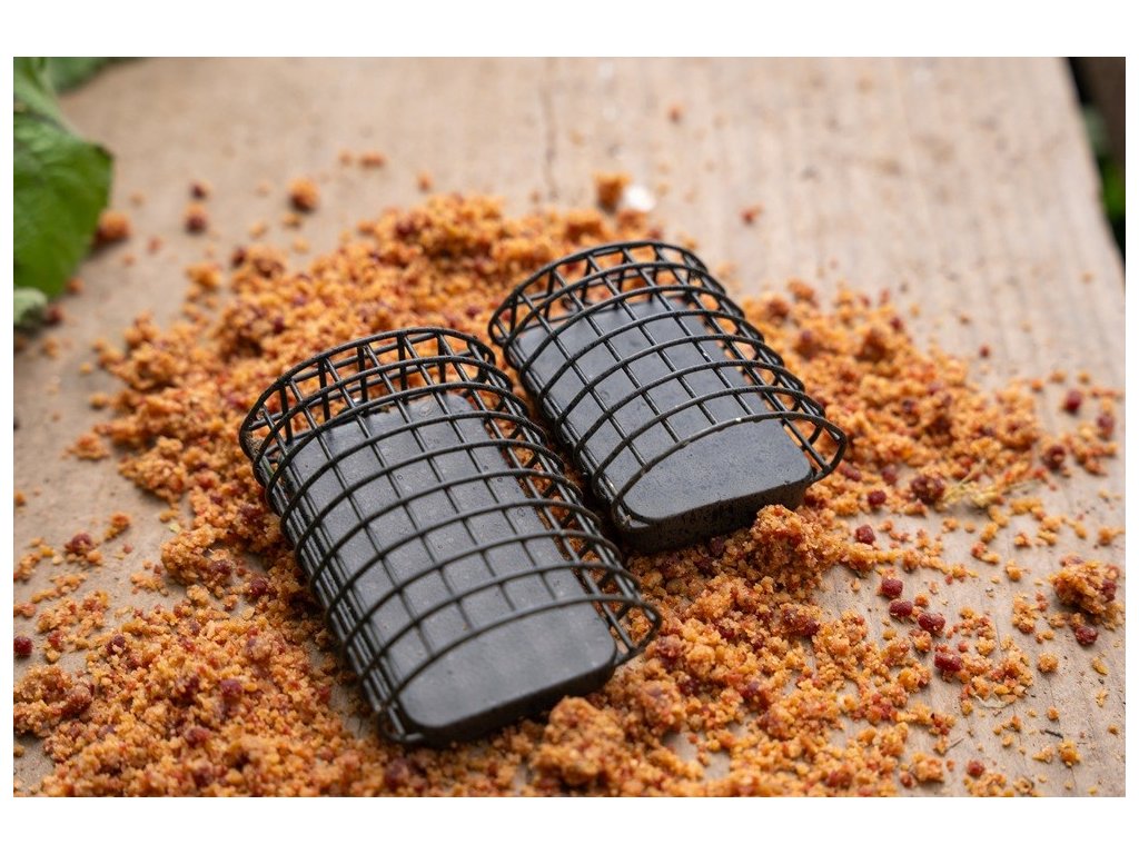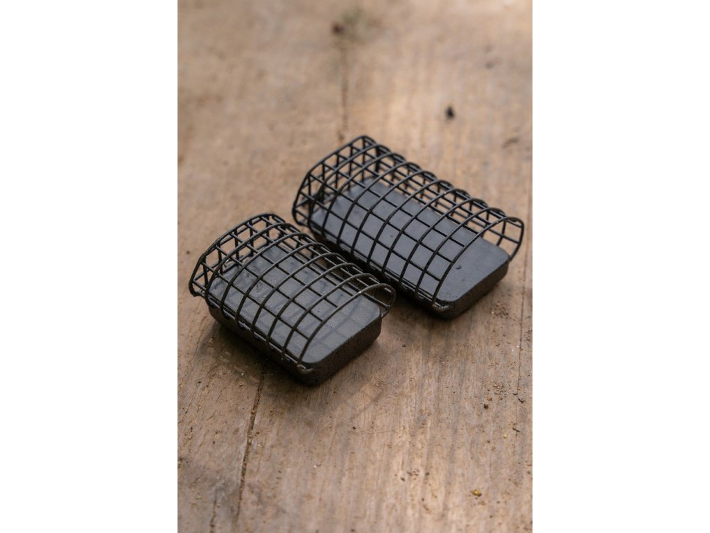 Vyrobeno ze super pevného a odolného kovového síťového rámu. Hydrodynamický design s nižším profilem pro použití v tekoucí vodě, s vystouplými úchyty na zátěži, díky kterým drží na dně řeky lépe než standardní krmítka. Uzavřená zadní část krmítka umožňuje použití návnad s většími částicemi v hlubší vodě a nabízí pomalejší uvolňování. Kamuflážní povrchová úprava pro dokonalé maskování.