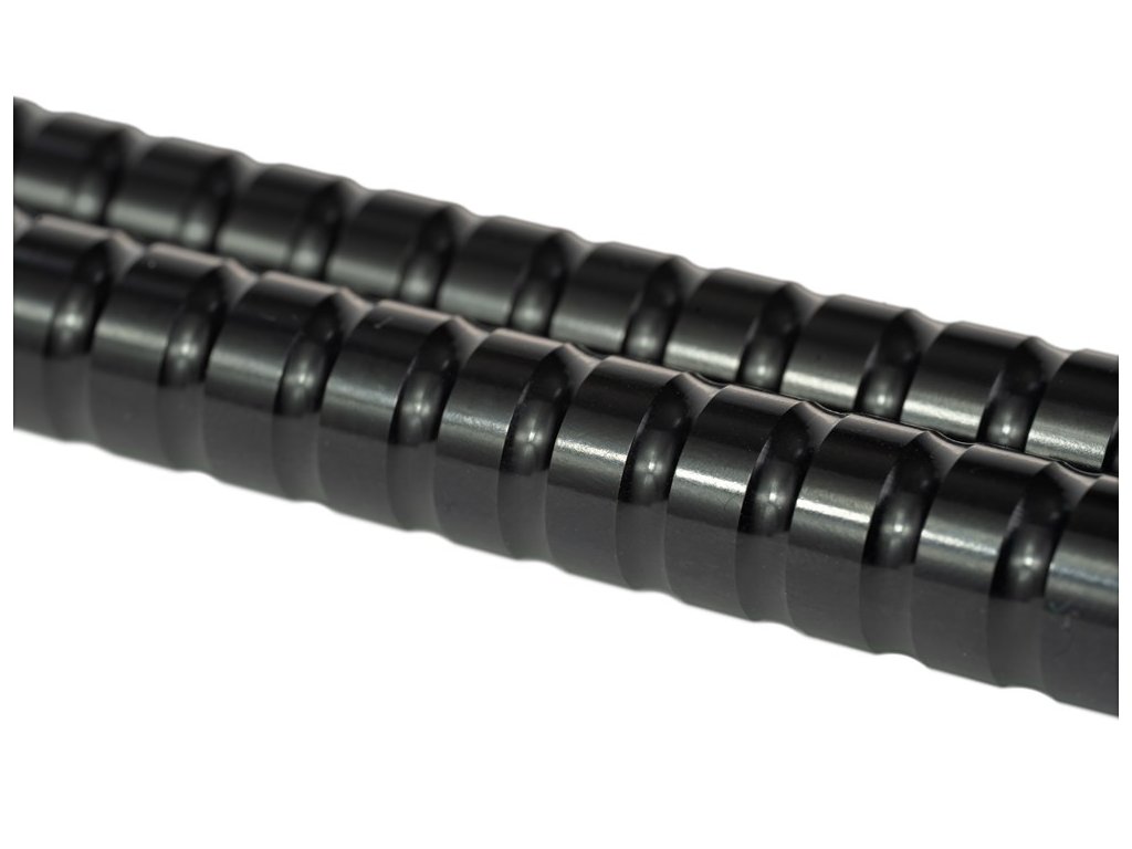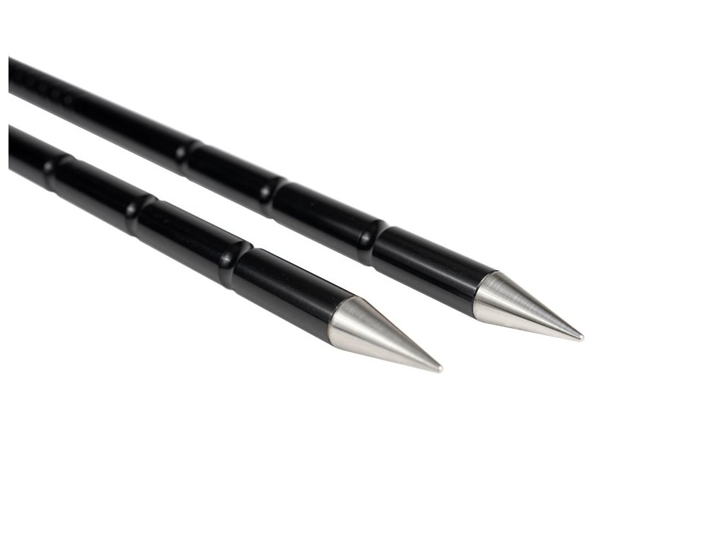 Tělo z eloxovaného hliníku je vybaveno drážkami pro uchycení vlasce, které nabízejí spoustu bezpečných míst pro rovnoměrné a úhledné „omotání“ vlasce bez sklouzávání. Visličky jsou precizně opracované s hladkým profilem, takže se po navinutí vlasec snadno odlepí. Tři větší drážky směrem ke spodní části tyčí poskytují místa pro upevnění měřicí šňůry v závislosti na hloubce zapíchnutí tyče do země. Hrot je vyroben z nerezové oceli, která má mnohem větší hustotu než lehké hliníkové tělo, což zvyšuje pevnost tyče a pomáhá zapíchnutí vidličky i do tvrdších povrchů u vody.