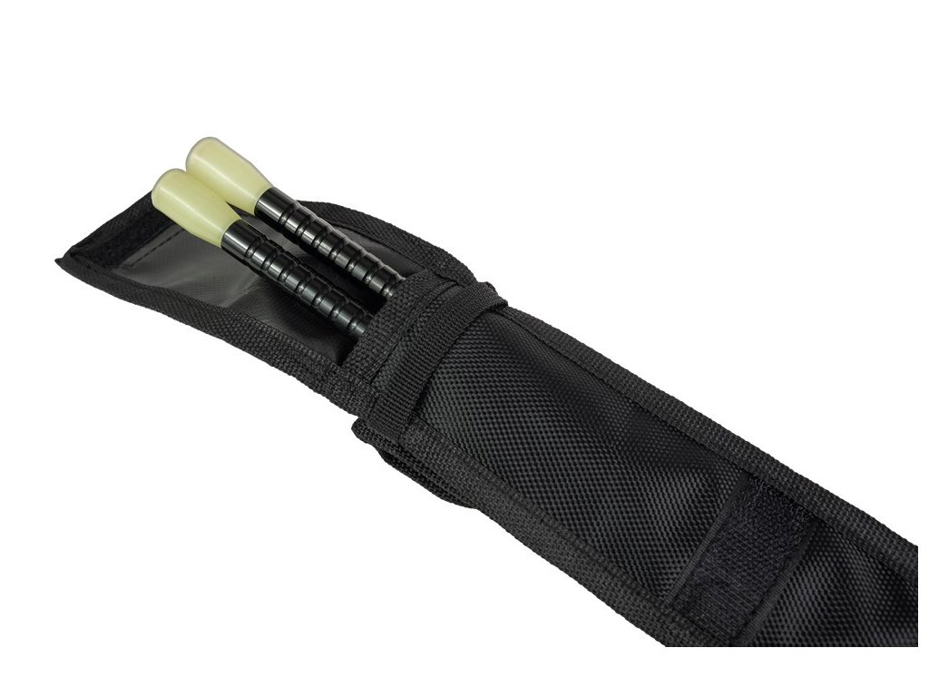 Tyčinky se úhledně zasunou do odolného hlavního prostoru ochranného pouzdra, které je poté utěsněno klopou na suchý zip s integrovanou síťovanou kapsou pro uložení měřicí šňůry.
