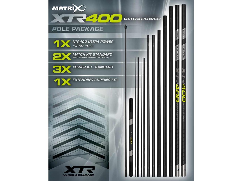 - Balíček XTR400 Ultra Power 14,5m Dělička 14,5m XTR400 Ultra Power 2ks Standard match topsetů (včetně 1ks v děličce) 3ks Standard power topsetů 1ks Twist lock prodlužovací kalíškovací topset Sada kalíšků 1x Mini mini prodloužení (do dílu 13m a 14,5m) Obal XTR.