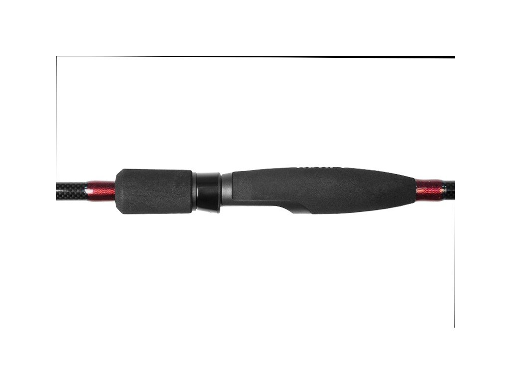 Série výborných, lehkých a rychlých přívlačových prutů BANG! dokáže překvapit i zkušené rybáře poměrem pořizovací ceny a vysokých užitných vlastností. Pruty výborně sedí v ruce díky ergonomickému tvarování rukojeti z EVA pěny. Dělená rukojeť a její tvar výrazně napomáhá k velmi dobrému vyvážení prutů série BANG! Ani několika hodinový lov s neustálým nahazováním neunavuje. Právě naopak, s tímto prutem si budete užívat každou chvíli u vody! Kónus karbonového 24T blanku vytváří "áčkovou" akci s pevným hřbetem a citlivou špičkou prutu. Záběr se tak okamžitě přenáší do rukojeti prutu, což dovoluje okamžitou reakci a rychlý zásek. Mezi prvními dvěma očky je červená kontrastní část pro lepší indikaci záběrů. Ostatní části prutu se nesou v kombinaci krvavě červené barvy a matného černého blanku, dokonale podtrhující celkový sportovní charakter prutu. Přesně určená velikost oček s výplní SiC a jejich rozložení umožňují dokonale přesné nahazování nástrahy do lovného místa.