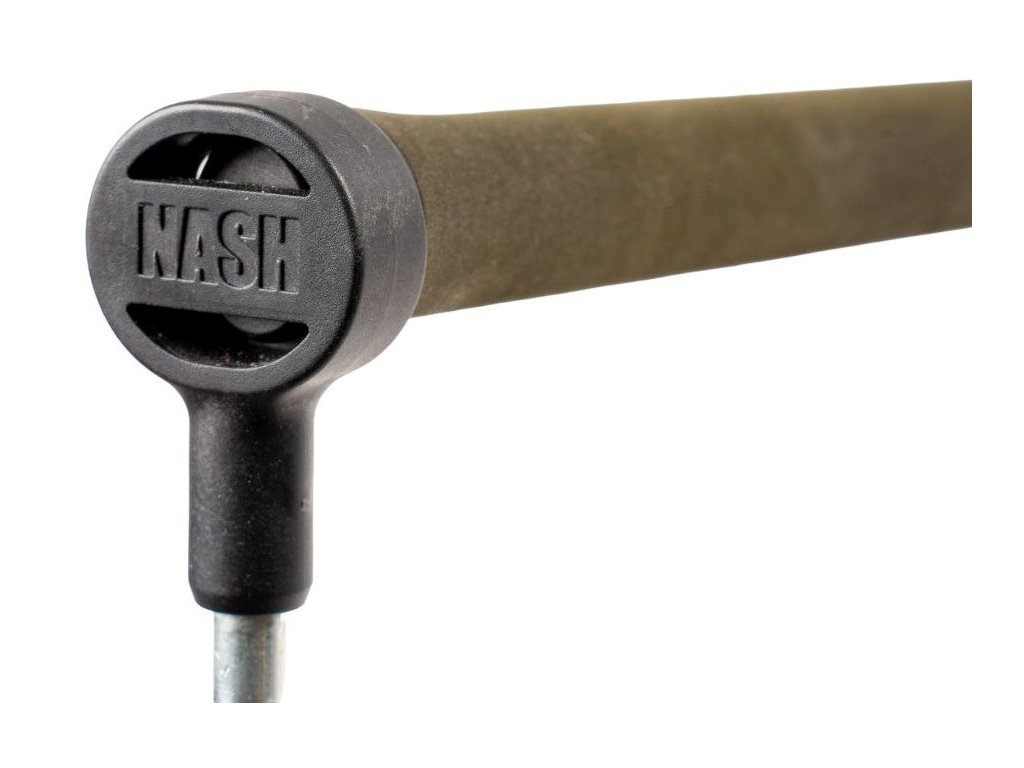 Elegantní karbonová sedla navijáku s gravírovaným logem Nash a plochým úchopem pro palec