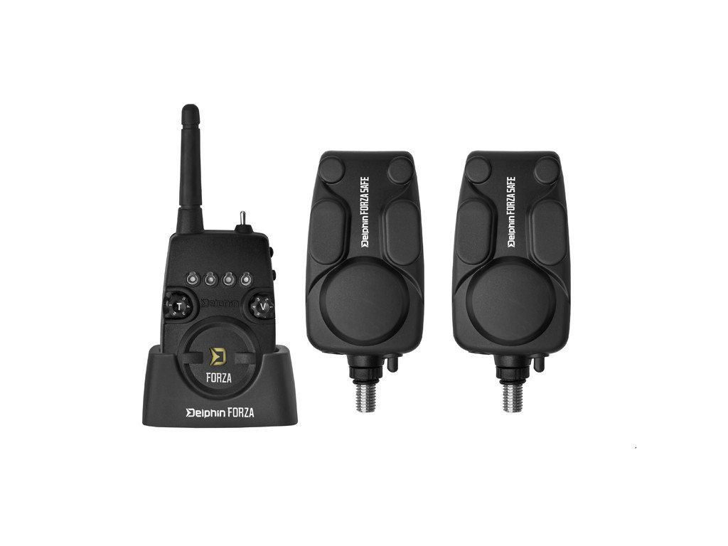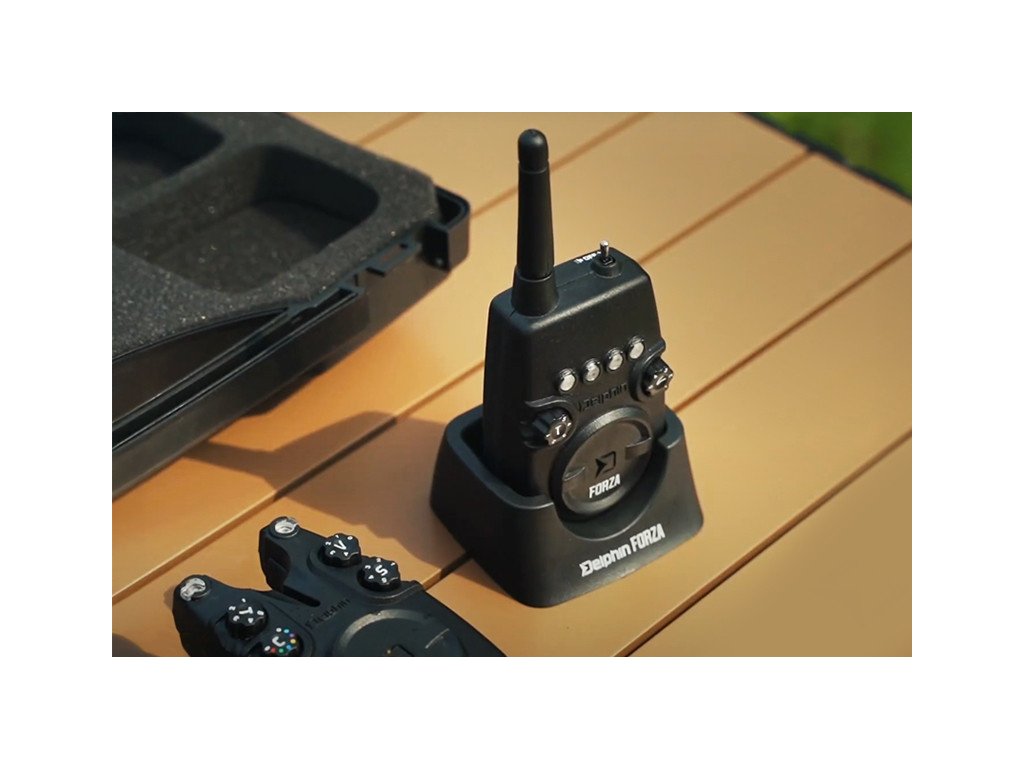 Delphin FORZA Life+ je sada signalizátorů s příposlechem poskytující spolehlivou světelnou, zvukovou či vibrační signalizaci záběru za každých okolností. Tělo signalizátorů a příposlechu je vyrobeno z černého pevného ABS plastu, což zaručuje odolnost vůči mechanickému poškození. Aspektem, který přispívá k dlouhé životnosti je také absolutní voděodolnost. Každý signalizátor je možné pomocí páčky přepnout do denního nebo nočního režimu. V případě nočního režimu se rozsvítí poziční LED dioda, díky které budete mít vždy přehled o rozmístění vašich prutů. Signalizátory disponují širokou škálou volitelných parametrů. Tón signalizace (spínač T) a citlivost v rozmezí 1-9cm (spínač S) lze navolit podle potřeby až z pěti možností. Při "padáku" resp. zpětném záběru budete upozorněni odlišným tónem. Hlasitost lze nastavit také v pěti různých úrovních, přičemž úroveň 0 představuje tichý mód. Nespornou devizou signalizátorů ze sady FORZA Life+ je možnost vybrat si ze 7 barev signalizační LED diody. Každý si tak vybere svou oblíbenou a pokud zatoužíte po změně, tak si jednoduše zvolíte jinou barvu pomocí otočného spínače "C (colour)" a nemusíte tak kupovat nový signalizátor. Ve spodní části se nachází vstup pro 2,5 mm konektor pro připojení svítícího indikátoru záběru. Každý signalizátor navíc disponuje závity na upevnění "snag gear", které jsou i součástí balení. Navíc k signalizátorům získáváte pevný transportní kryt a k přijímači stolní držák!