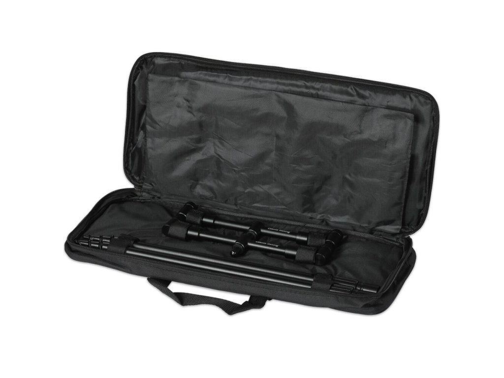 Konstrukce je vyrobena z hliníkové slitiny s povrchovou úprava v černé barvě. Jak vidličky, tak i hrazdy jsou opatřeny otočným zámkem, který bezpečně zafixuje požadovanou délku či šířku. Velmi široké využití, kde nelze použít stojan, ale potřebujete stabilně upevnit pruty. Polstrovaný obal je součástí výrobku.