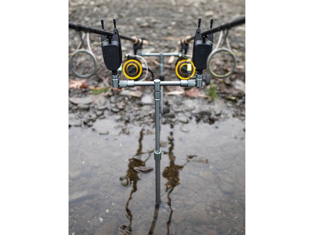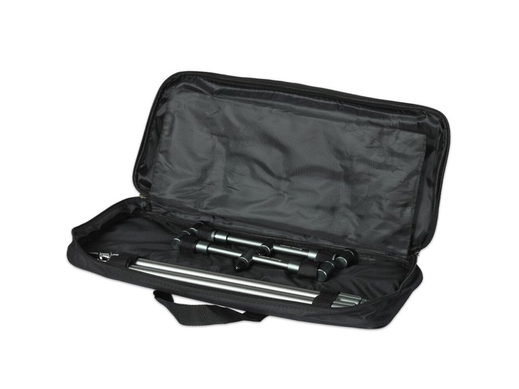 Konstrukce je vyrobena z hliníkové slitiny s povrchovou úprava v stříbro/šedé barvě. Jak vidličky, tak i hrazdy jsou opatřeny otočným zámkem, který bezpečně zafixuje požadovanou délku či šířku. Velmi široké využití, kde nelze použít stojan, ale potřebujete stabilně upevnit pruty. Polstrovaný obal je součástí výrobku.