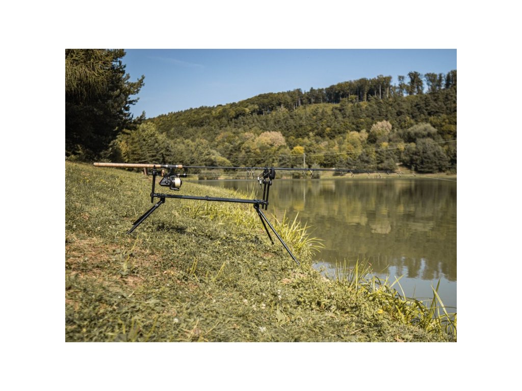 Díky propracované konstrukci, má tento stojan využití jak na řece, tak na velkých jezerech. Posuvný mechanizmus hlavní části, Vám zajistí široké možnosti nastavení tohoto stojanu a k tomu dopomáhají široce nastavitelné přední, tak zadní nohy. Součástí stojanu jsou dvě hrazdy na tři pruty, ale lze si dokoupit hrazdy na dva pruty. Dalším doplňkem k dokoupení, je pár předních prodloužených nohou. - Základem konstrukce je posuvný mechanizmu nohou, který zajistí stabilitu - Systém pro prodloužení rámu, který je pohodlný pro manipulaci a kompaktní - Nastavitelné polohy nohou, které oceníte na různých terénech - Hrazdy na tři pruty - Dodáván s ochranným přepravním obalem - Rozměry: 63x43x35xcm ( složený stojan ) - Hmotnost: 2,2kg