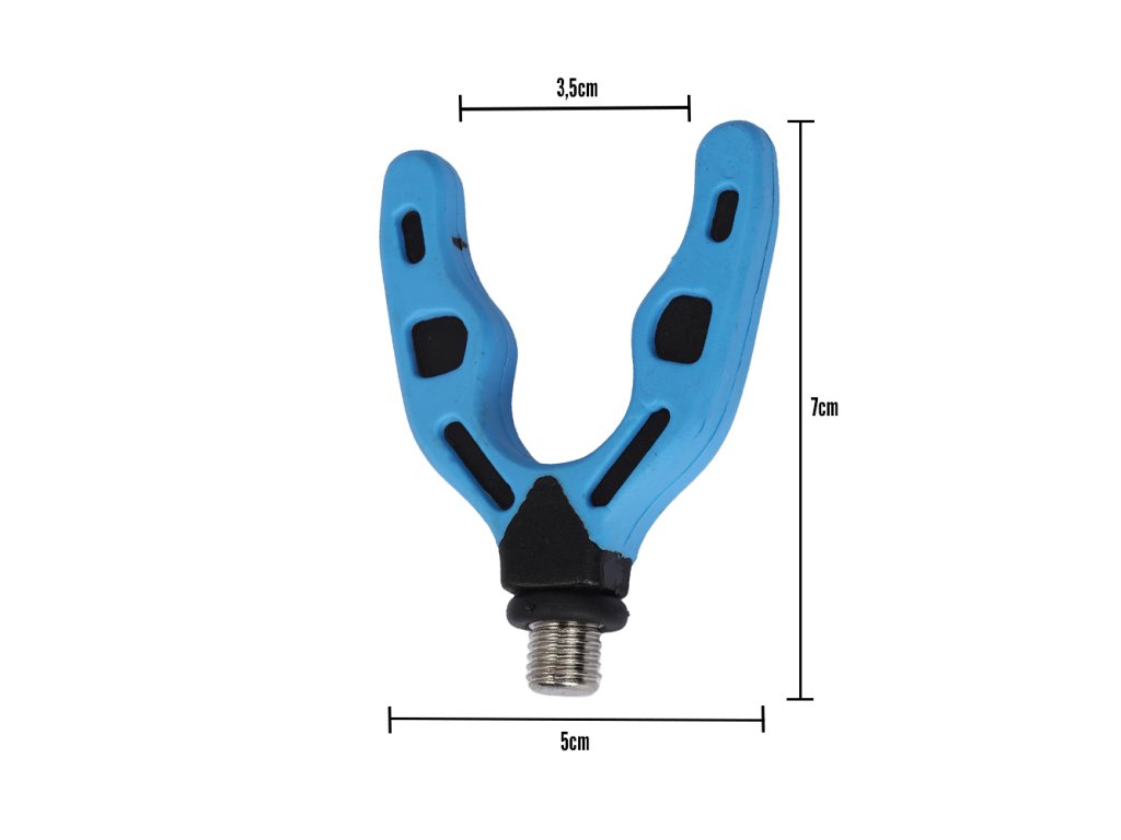 Díky svému tvaru je rohatinka vhodná na různé průměry rukojetí. Doporučujeme na feederové, pickerové a plavačkové pruty. Na závitové části se nachází gumová podložka, která zamezuje otáčení držáku. Šířka: 5 cm Výška: 7 cm Hmotnost: 23 g