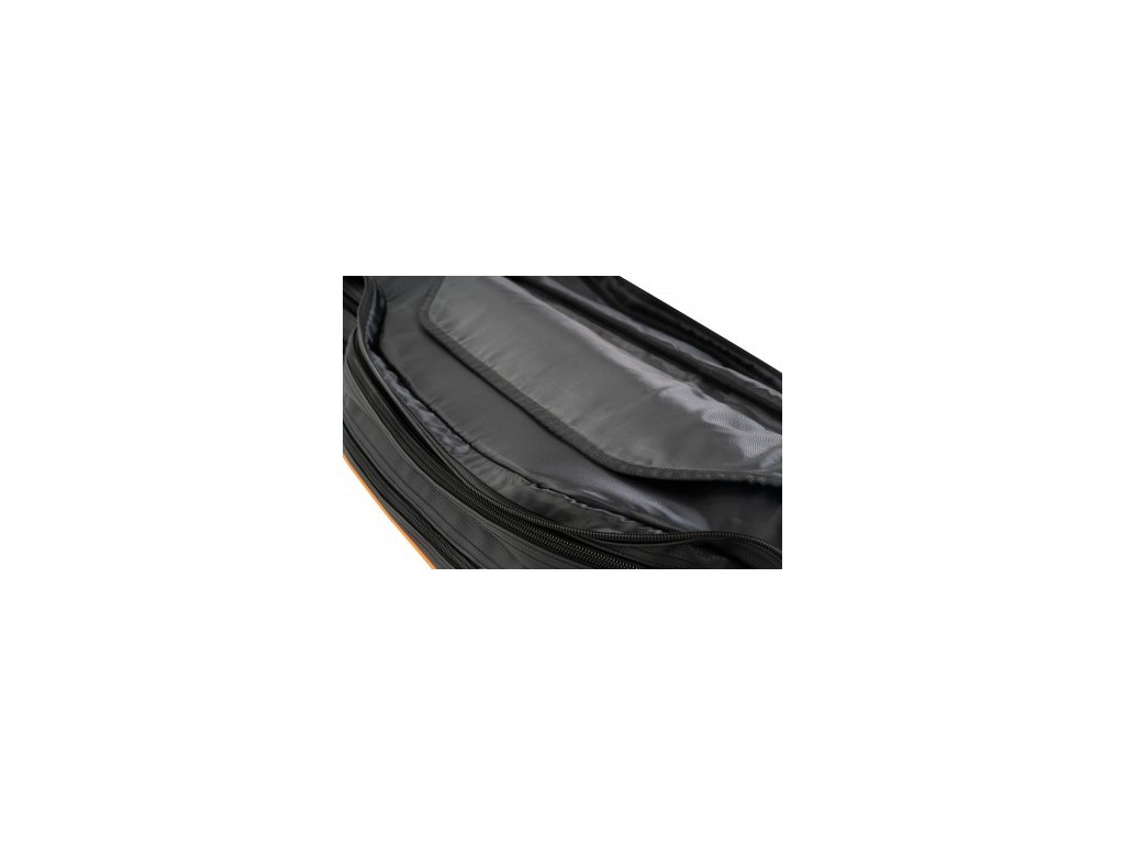 Každý obal má rozdělené sekce (3 na 6+ a 5 na 10+) s individuálními polstrovanými přepážkami v každé sekci, které poskytují maximální ochranu vašemu prutu a navijákům. Spolu se dvěma vnějšími kapsami, záměrně navrženými pro uložení předmětů, jako jsou rukojeti podběráku, ramena na příslušenství, distanční tyče, deštníky na nástrahy atd. Prostor mezi těmito dvěma kapsami dokonale podpírá velký deštník, který je navržen tak, aby se zasunul do kapsy na dně tašky a poté byl zachycen na místě pomocí rukojeti.