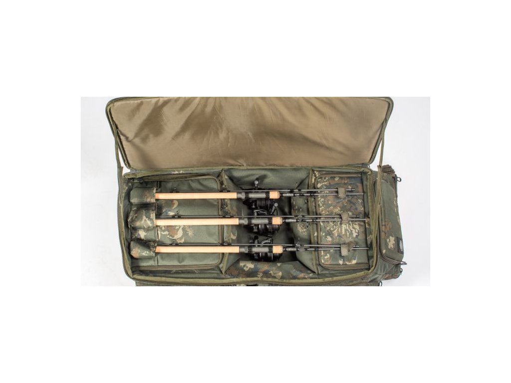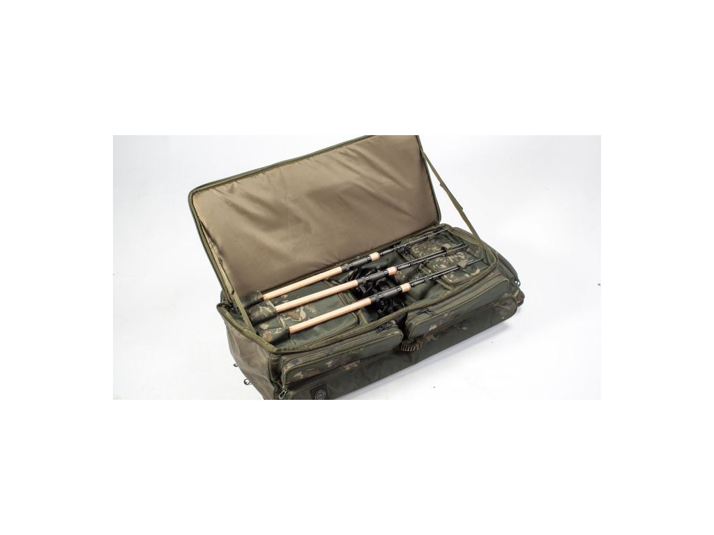 Ta nejkrásnější možnost, jak přepravovat tři 6ft sestavené pruty. Design klasické tašky s vyztuženým EVA víkem a dostatečným prostorem pro všechno vybavení. Když pruty vyjmete, dvě hlavní komory Vám poskytnou místo na všechny potřebné věci. Větší komora slouží pro rybářské vybavení a menší má kvalitní termoizolační vložku, takže je vhodná pro uskladnění návnad, jídla anebo třeba mléka do kávy a čaje. Tři dlouhé vnější kapsy na zip slouží pro uložení podběráku, vidliček a hrazd. Tři polstrované kapsy na opačné straně jsou na uložení větších věcí a EVA kapsa na víku slouží pro pěněženku, klíče a další cennosti. Transformer je hlavně o univerzálnosti. Můžete ho vozit na plocho na vozíku, přenášet pomocí poutek anebo díky popruhům na ramena nosit jako klasický batoh. Když popruhy nepoužíváte, můžete je bezpečně překrýt zazipovaným nepromokavým přehozem.