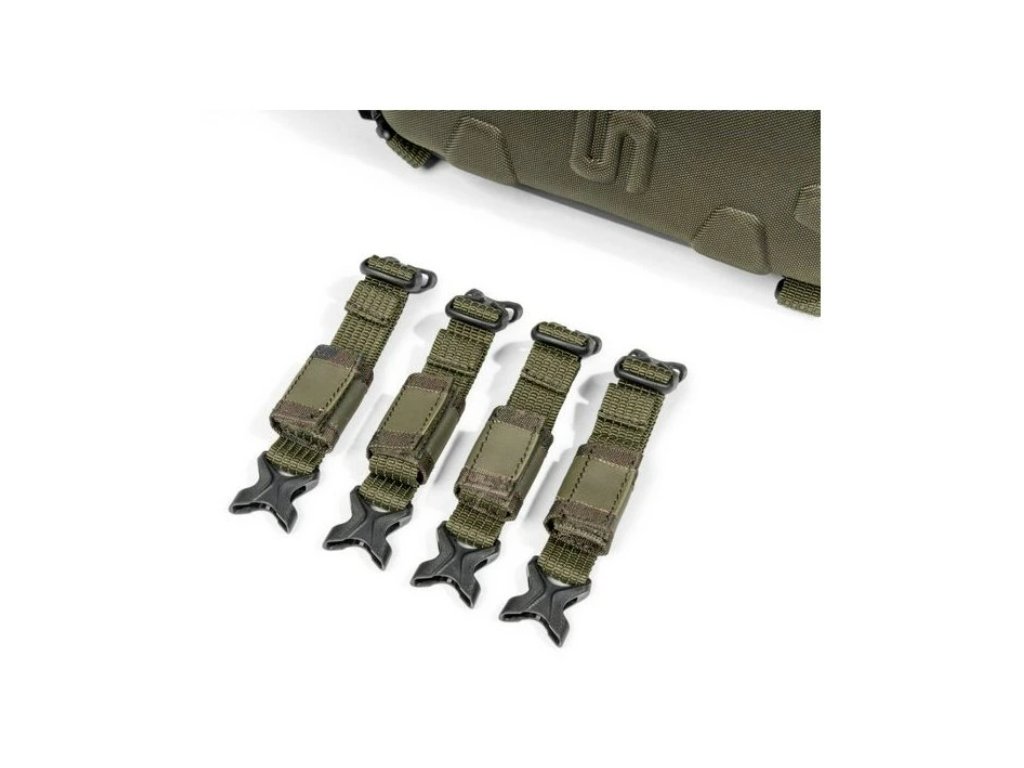 - Tři sady elastických poutek na každé boční kapse pro vidličky a hlásiče