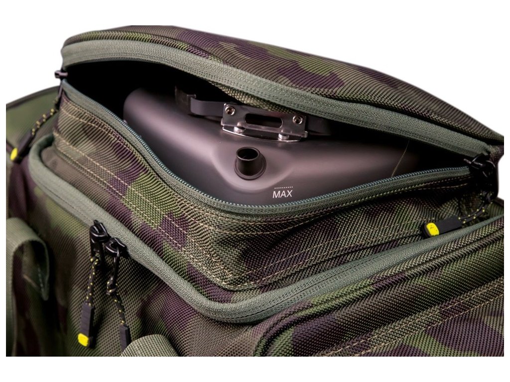 Vnitřní hlavní přihrádka je ideální pro uložení rychlovarné konvice, vařiče, toustovače, plynové kartuše, hrnku a příborů, zatímco vnější boční termokapsy s izolační vrstvou jsou ideální pro uchování menších potravin a potravin, které mají zůstat v chladu.