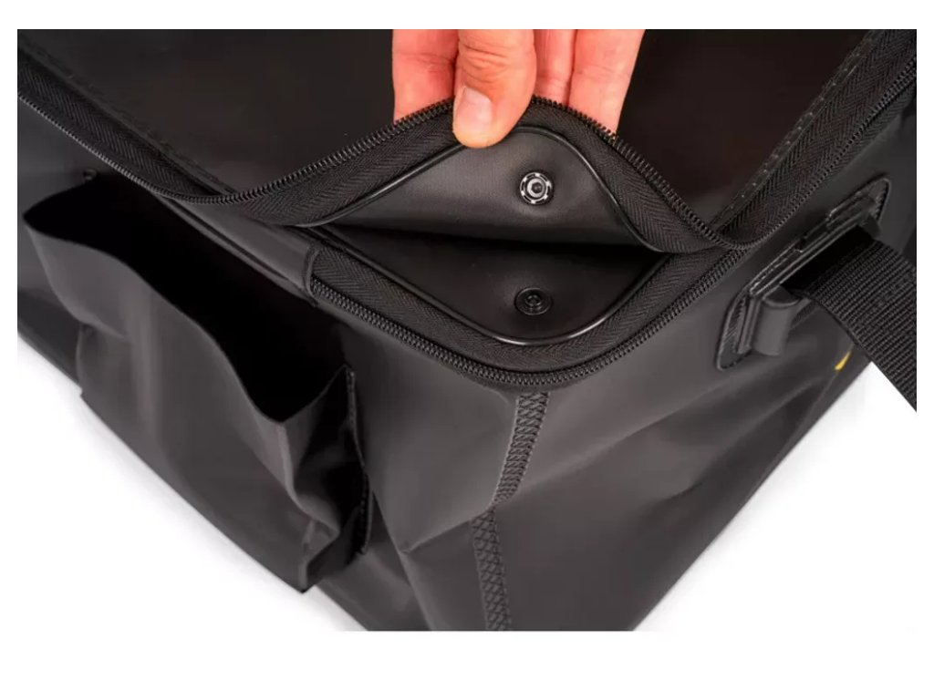 Prostorná a pevná řízkovnice Black Cat s vyztuženou základnou, víkem na zip a kapsou na vzduchování pro bezpečný transport živých nástrah.