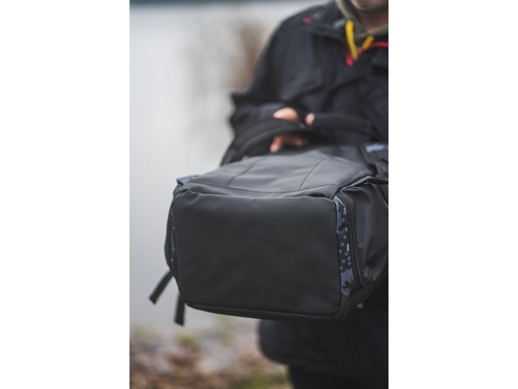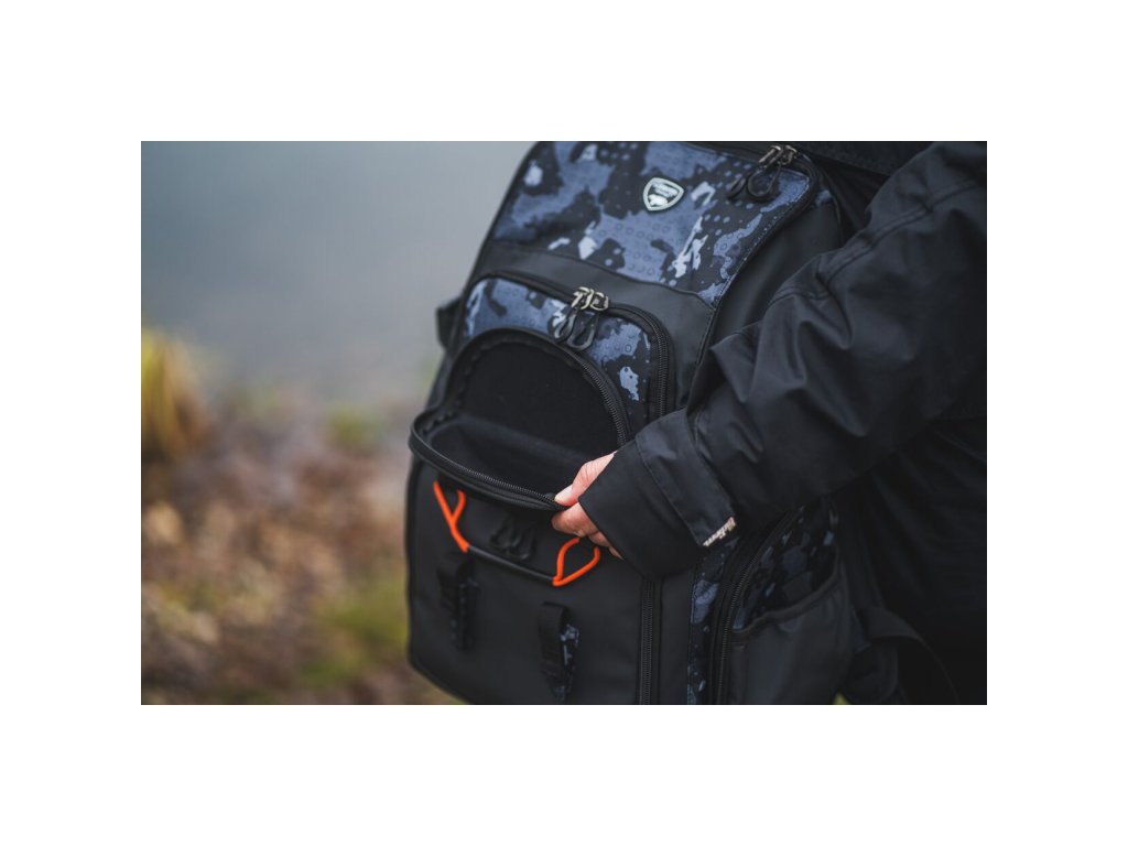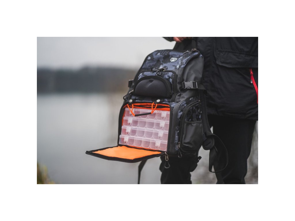 - Ramenní popruhy s odvětráváním a měkčené komfortní madlo - Pouzdro na brýle, které je vyrobené z tvrzeného EVA materiálu - Ve spodní části jsou čtyři plastové krabičky, které jsou součástí batohu - Na přední části jsou dvě kapsy k uchycení kleští a držák na doplňky - Po obou bocích jsou praktické kapsy na zip, do kterých můžete uložit drobnější předměty - Po obou bocích jsou vnější úchyty na prut, nebo skládací podběrák - Spodní a zádová číst jsou z pogumovaného materiálu a tudíž jsou dobře umyvatelné - Vodě odolný nylonový kamuflážový materiál 420D - Rozměry batohu: 33x20x45cm - Rozměry krabiček: 35x22x4,5cm - Hmotnost: 2,1kg