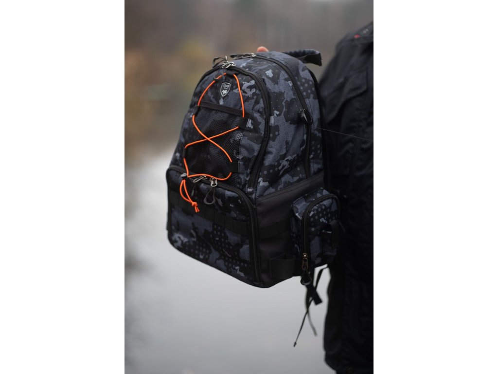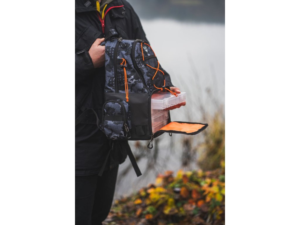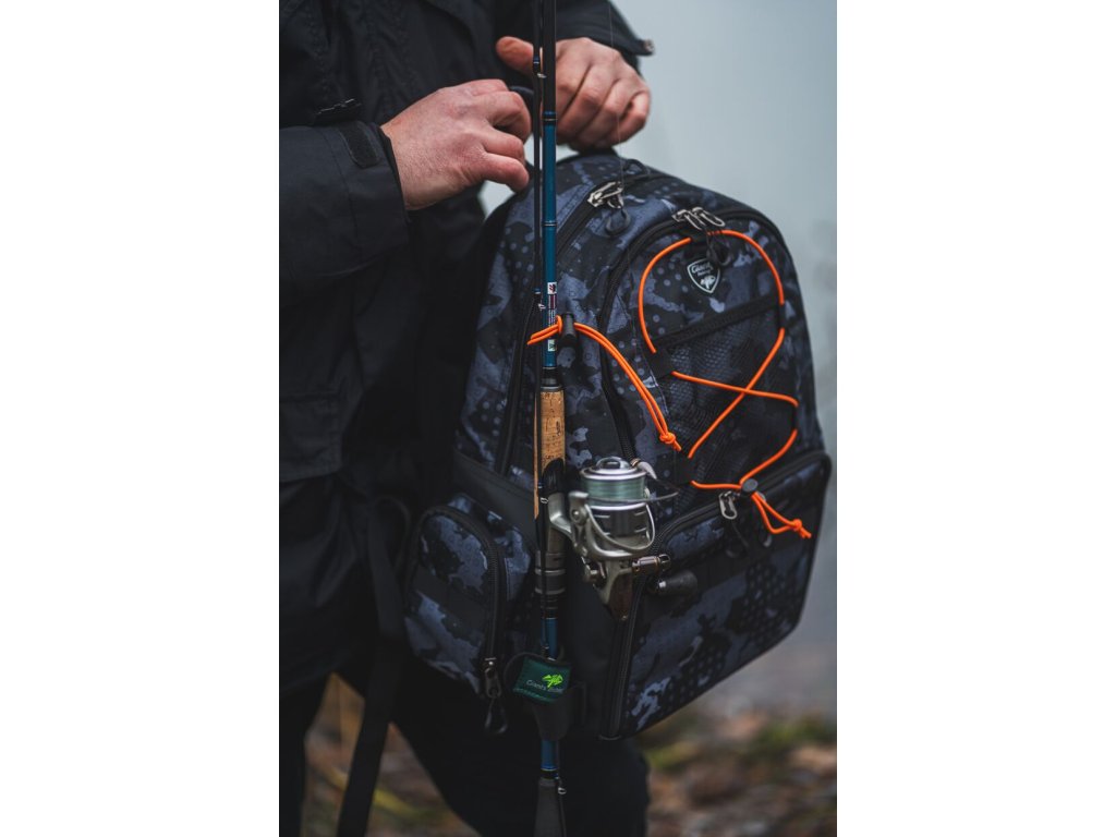 - Na levé straně lze uchytit rybářský prut - Rozdělen na dvě komory, vrchní pro příruční věci a ta spodní obsahuje čtyři plastové krabičky - Jedna zipová kapsa na přední straně a vnější síťová - Na boku batohu naleznete cvakátko na vlasec - Vodě odolný nylonový kamuflážový materiál 420D - Rozměry batohu: 33x19x40cm - Rozměry krabiček: 27,5x18x4,2cm - Hmotnost: 1,57kg