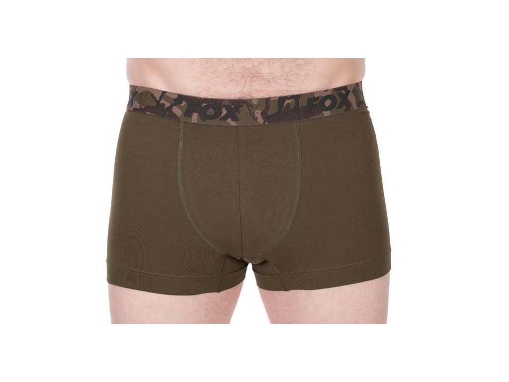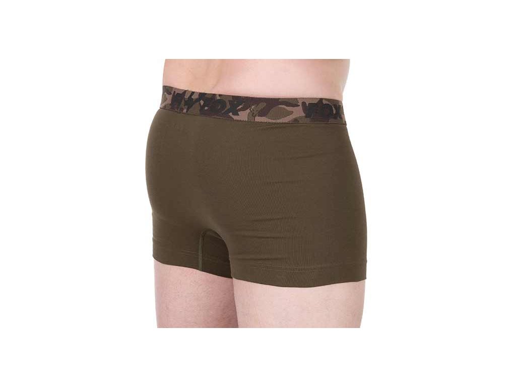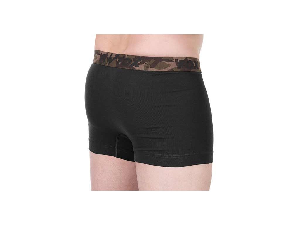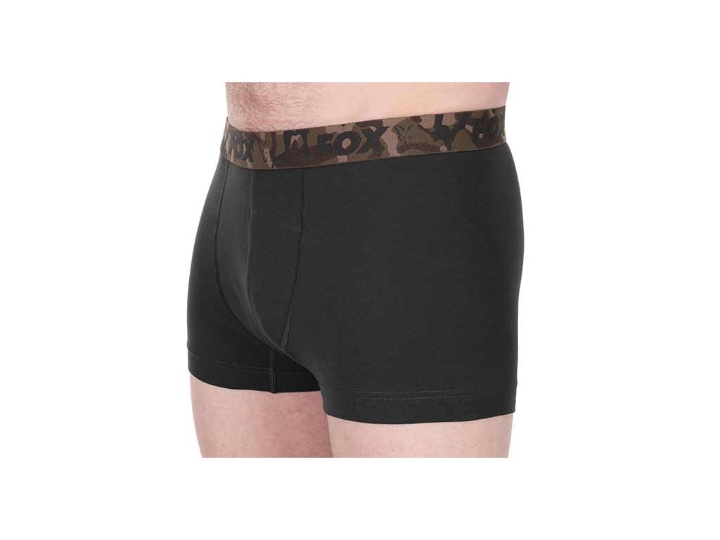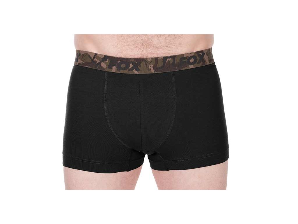Náhled produktu Dvoj balení boxerek – 1x Černé, 1x Khaki. Fox camo guma v pase. Pohodlná pružná bavlna. 95% Bavlna, 5% Elastan. V nabídce ve velikostech M (32-34” / 81-86cm), L (36-38” / 91-97cm), XL (40-42” / 102-107cm).