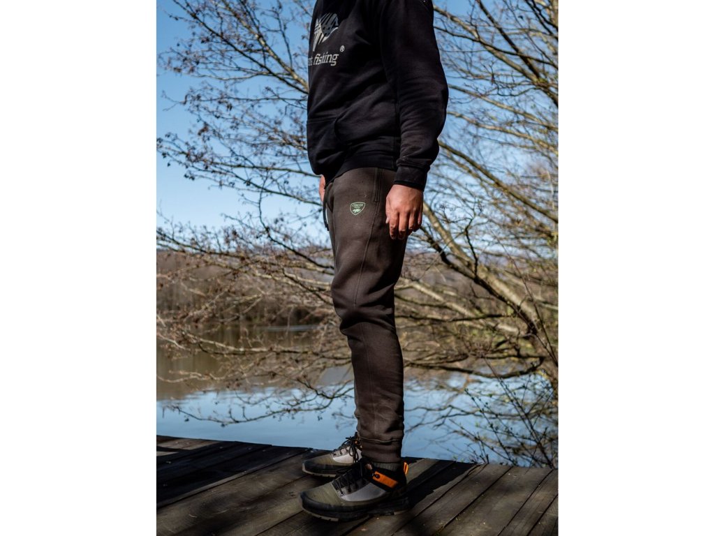 Skvěle padnoucí a pohodlné tepláky, které ocení nejen rybáři. Vyrobeno z materiálu o gramáži 280gsm, která je kombinován z 60% polyester a 40% bavlna. Polyester zajistí lehkost a komfort, zatímco bavlna se postará o prodyšnost a má izolační schopnost. Vrchní lem je elastický a lze ho ještě dotáhnout šňůrkou. Obě boční, tak i zadní kapsa jsou opatřeny zipy, což zabrání nechtěné ztrátě jejich obsahu.