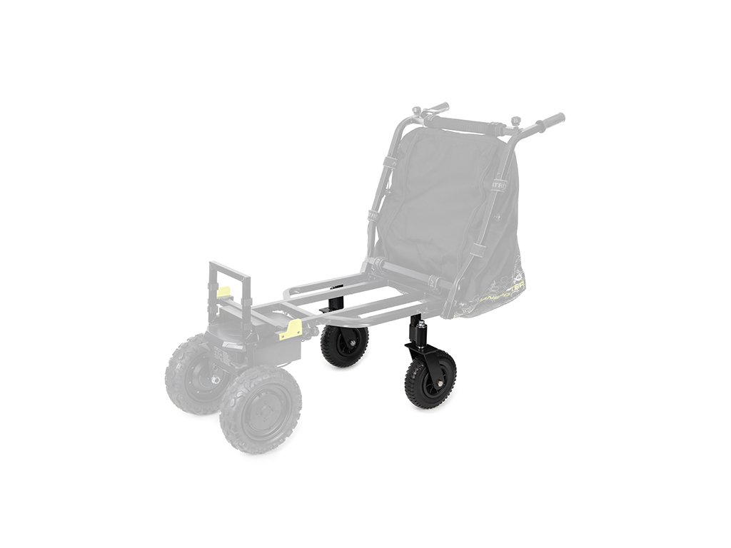 Otočná kolečka Swivel Wheels lze během několika sekund snadno připevnit k transportnímu vozíku 4 Wheel transporters nebo Power Transporters, čímž uživateli umožní snadné řízení pomocí zadních kol.