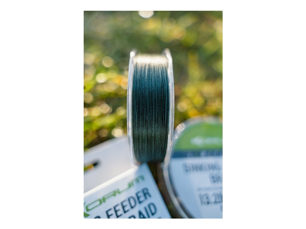Šňůra na velké ryby pro lov na feeder na dlouhé vzdálenosti, kde je nezbytná nulová průtažnost a maximální síla. Konstrukce 8+1 PE a PTFE zaručuje, že tento oplet zvládne extrémní podmínky. Měrná úroveň hmotnosti je hustší než voda, což zajišťuje rychle klesající šňůru pro přímý kontakt s vaší soupravou. Tmavě kamuflážní zelená barva dobře kontrastuje s vodou a poskytuje skvělou vizuální indikaci. Při odhazování těžších zátěží nebo na extrémní vzdálenosti se doporučuje používat Limitless Feeder Braid s návazcem.