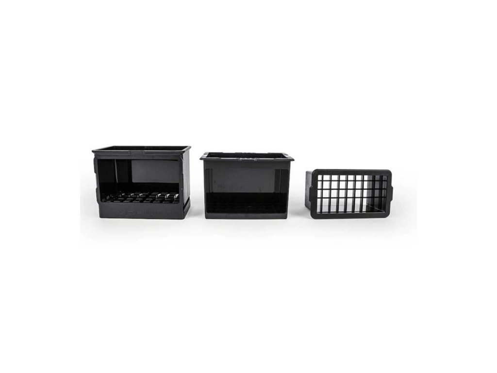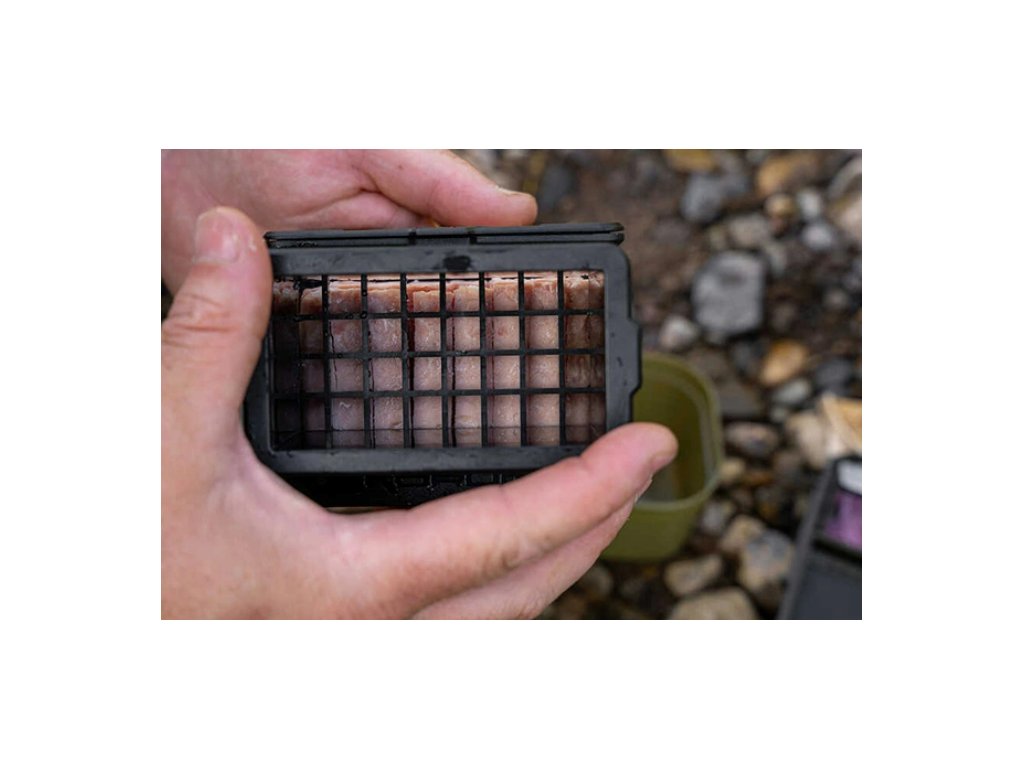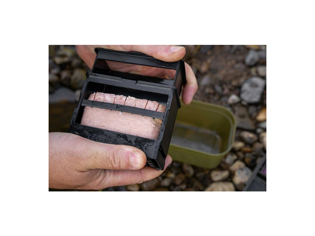 Kráječ masa nabízí jednoduché a kompaktní řešení pro krájení "lančmítu" na ideální velikost. Dvoudílný proces krájení zajišťuje pěkně úhledné kostky, které dokonale odpovídají velikosti Korum Meat Stoppas. 1. Vložte "lančmít" do vnější jednotky a vycentrujte jeho polohu. 2. Pomocí štěrbinové jednotky nakrájejte na proužky. 3. Pomocí kostkovací jednotky vyrobte hotovou kostku. 4. V případě potřeby použijte k uvolnění kostek výtlačné tlačítko na nástroji.